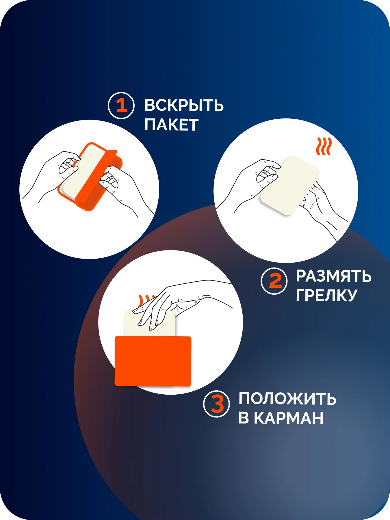 Благодаря компактным размерам не занимает много места в рюкзаке. Когда нужно согреться – удобно размещается под одеждой, не стесняет движений и не причиняет дискомфорт. Быстро согреет в самую морозную погоду. В наличии и под заказ с доставкой по России.